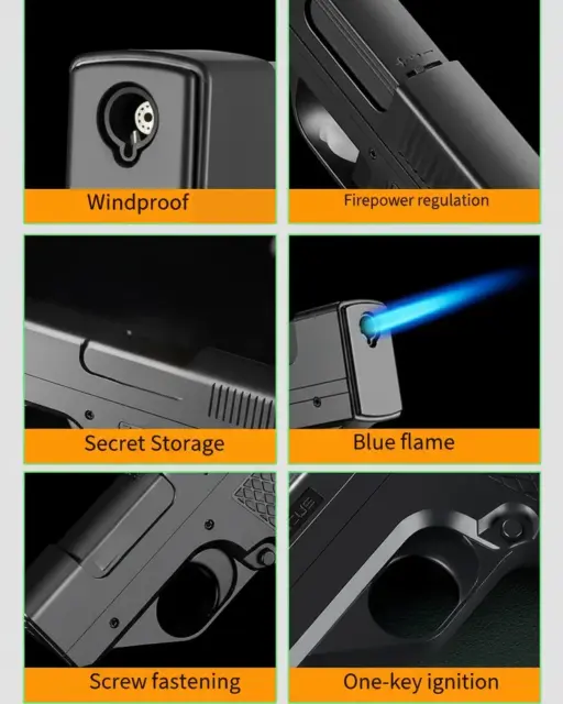 The Gun Shape Secret Storage Jet Flame Lighter combines bold design with practical function. It delivers a strong jet flame for reliable use while hiding a discreet compartment for small essentials. A standout piece for collectors and anyone who loves unique, eye-catching gear.⁠