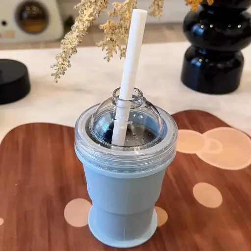 - Leak-resistant lid with built-in straw
