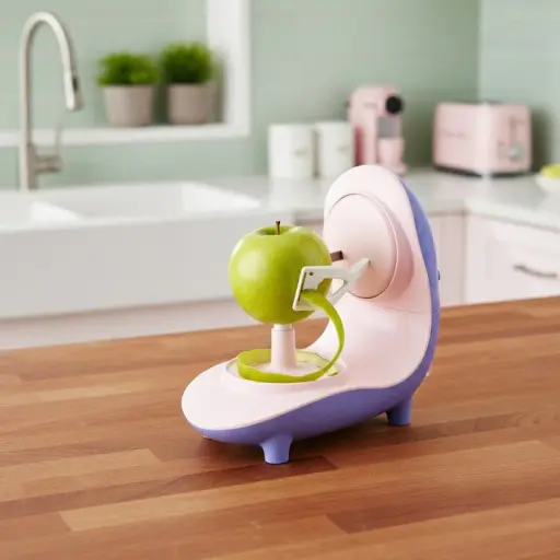 - Upright Countertop Design: Holds produce in place during peeling for controlled operation.