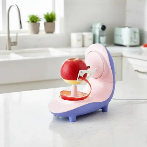 A compact electric peeler made from ABS material, designed for peeling fruits and vegetables with a clean, countertop-friendly form.